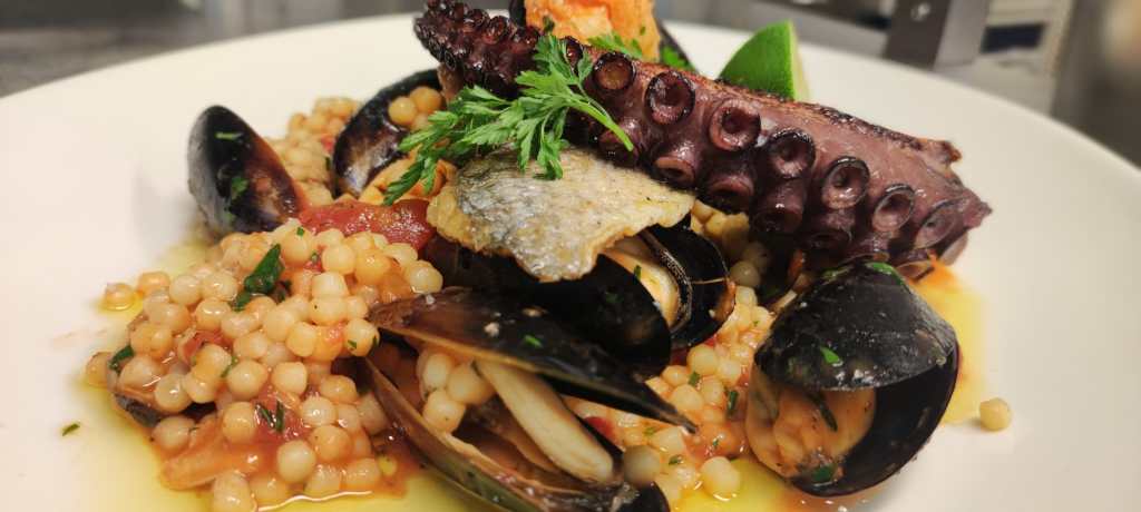 Grilled Tuna/Octopus, sicilian vegetables Caponata